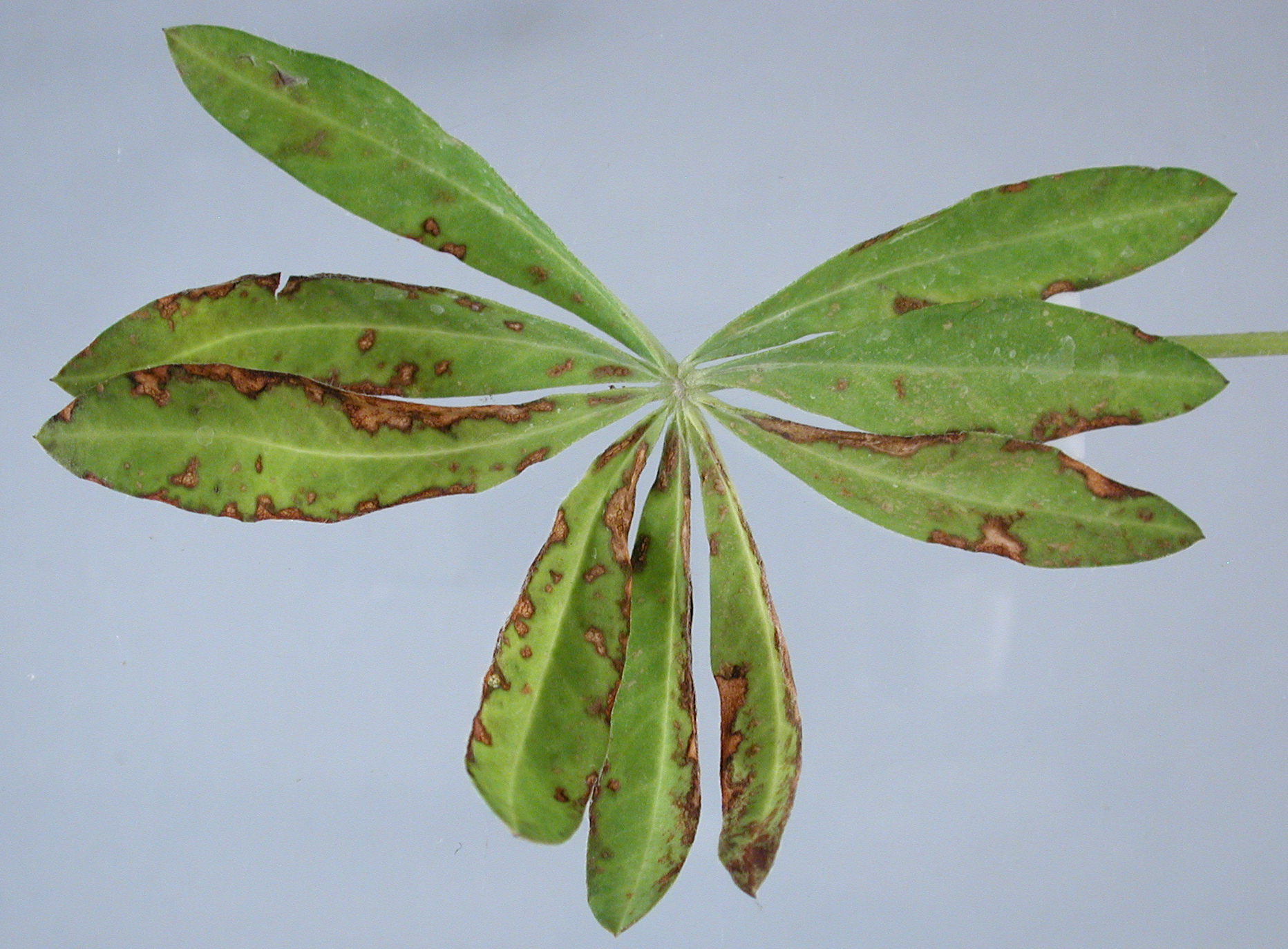 Nevezik még csillagfürt barna foltosságnak is. Ez a gombabetegség főként a fehérvirágú csillagfürtöt betegíti meg. A fertőződés hatására bekövetkező levél elhalás, a hüvely és magfertőzés jelentős terméscsökkenést és beltartalmi minőségromlást idézhet elő. A betegség erőteljes megjelenésére az átlagosnál csapadékosabb, párás időjárási körülmények esetén lehet számítani. A leveleken éles határvonallal elválasztott, szabálytalan alakú, vörösesbarna színű, 5-10 mm átmérőjű foltok jelennek meg, melyek kissé besüppednek a levél felszínén. A fertőzés a növényen alulról indulva terjed felfelé. A betegség elsőként az alsó leveleken jelentkezik, innen terjed át a felső harmadban lévőkre, majd a növény szárára, végül a hüvelyekre és a magokba is behatol. Ennek következtében a magok felületén barna színű foltosság alakul ki. A hüvely fertőzésének jellegzetes tünete a sötétbarna, koncentrikus gyűrűzöttségű, besüppedő foltok, amikben fekete színű, konídiumtartó gyep telepek fejlődnek ki. Megelőzés szempontjából fontos, hogy a vetésforgót szabályszerűen betartsuk, fertőzött területre 4-5 éven belül ne kerüljön csillagfürt. Lényeges elem, hogy kizárólag, egészséges, fémzárolt és csávázott vetőmagot használjunk. A fertőzött növényi maradványokat maradéktalanul meg kell semmisíteni, aláforgatni. Szükség esetén kémiai védekezést is alkalmaznunk kell állománypermetezés formájában, ehhez különböző réztartalmú szerek állnak rendelkezésünkre.