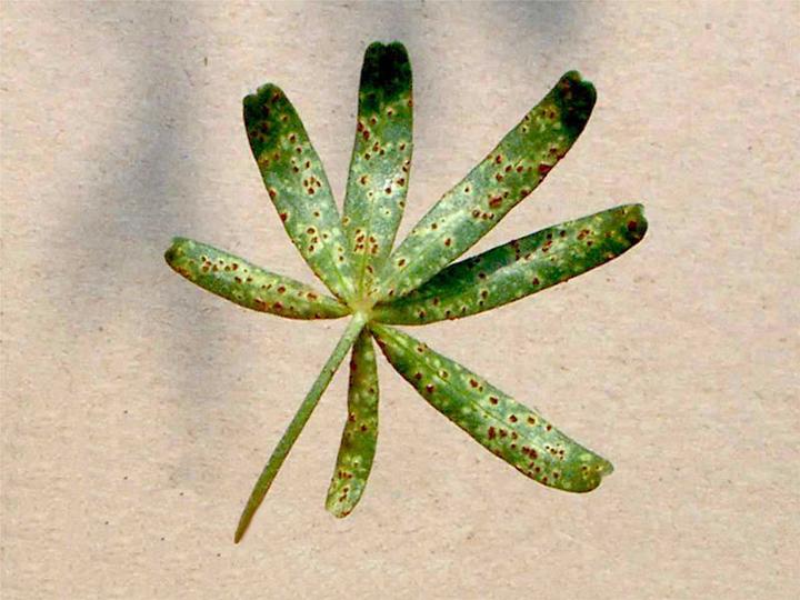 Régóta ismert gomba betegség. Főként a vegetáció végén, illetve másodvetésű állományokban fejti ki károsító hatását. Polifág kórokozó, a csillagfürt mellett több gazdanövénye is lehet. Mindhárom csillagfürt fajon előfordulhat. A kórokozó terjedésének kedvez a párás, meleg évjárat, általában július közepétől augusztus végéig jelenhet meg a növényeken. Elsősorban a csillagfürt levelein jelentkeznek a tünetek, de előfordulhat, hogy a levélnyélen vagy a száron is megjelenhetnek. Ahol a gomba megtelepedik kifejlődnek a spóratelepei (uredo- és teleutospóra telepek). Kezdetben kicsi, sárgászöld foltok jelennek meg a fertőződött területeken, aminek a közepén nem sokkal később világosbarna, kör alakú rozsdapusztulákat (uredotelepeket) lehet felfedezni. Ezt követően ugyanitt sötétbarna, fekete, szintén porzó teleutotelepek is megjelennek. Súlyos fertőzés esetén a levelek elsárgulnak és lehullanak. Hazánkban csak elvétve fordul elő, terméskiesést nem okoz, a legtöbb esetben károkozása gazdasági szempontból jelentéktelen. Megelőzés szempontjából fontos, hogy gyommentesen tartsuk az állományt és a táblaszegélyeket. A fertőzött növényi maradványokat mély aláforgatással meg kell semmisíteni. Ha szükséges kémiai védekezést is tudunk alkalmazni, különböző réztartalmú készítmények segítségével.
